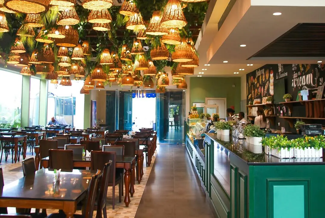 Fiora Garden in Ikeja GRA has quickly become one of those places couples visit when they want a romantic atmosphere.The restaurant has a garden-inspired setting with greenery, outdoor seating and soft lighting at night. It is the kind of place where people come for birthdays, date nights and intimate dinners. While Fiora offers indoor dining, its open air dining option is its trademark with neon lights, water fountains and droopy roof lanterns that light up beautifully in the evening. The ambience alone makes it feel special enough for Valentine’s Day.